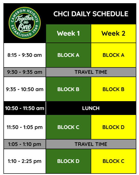 Log into Cameron Heights Collegiate Institute · Go to Staff Intranet · Go to CHC School Handbook